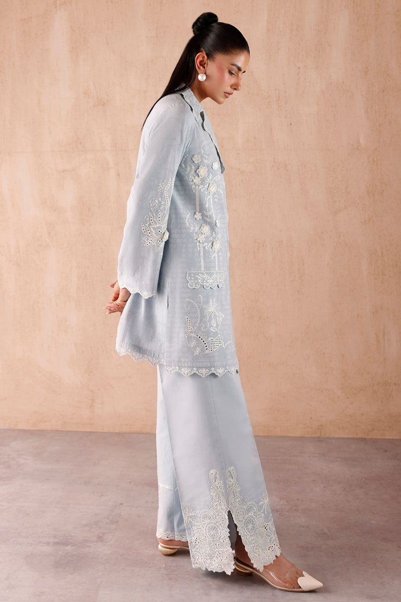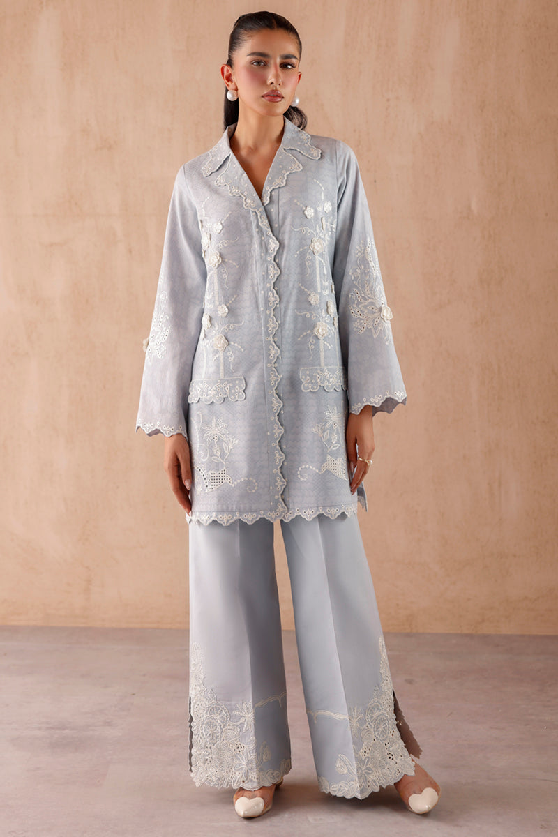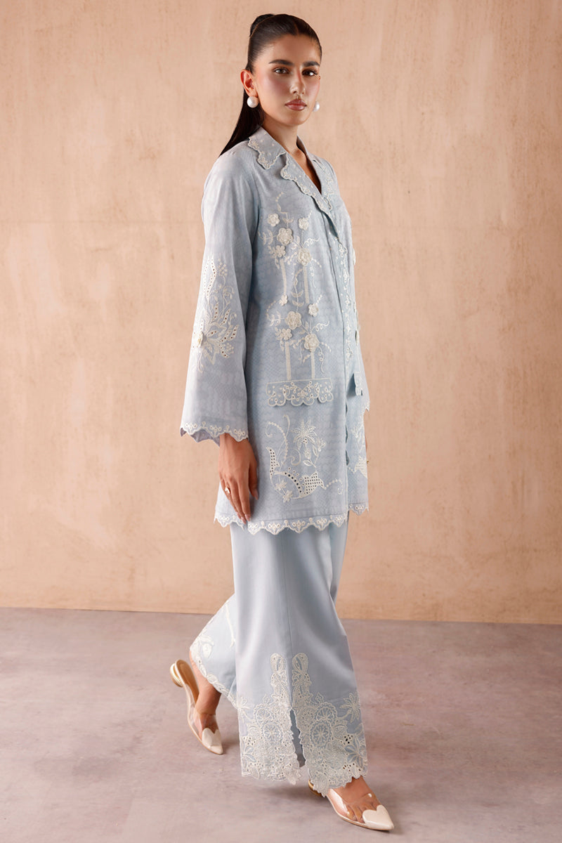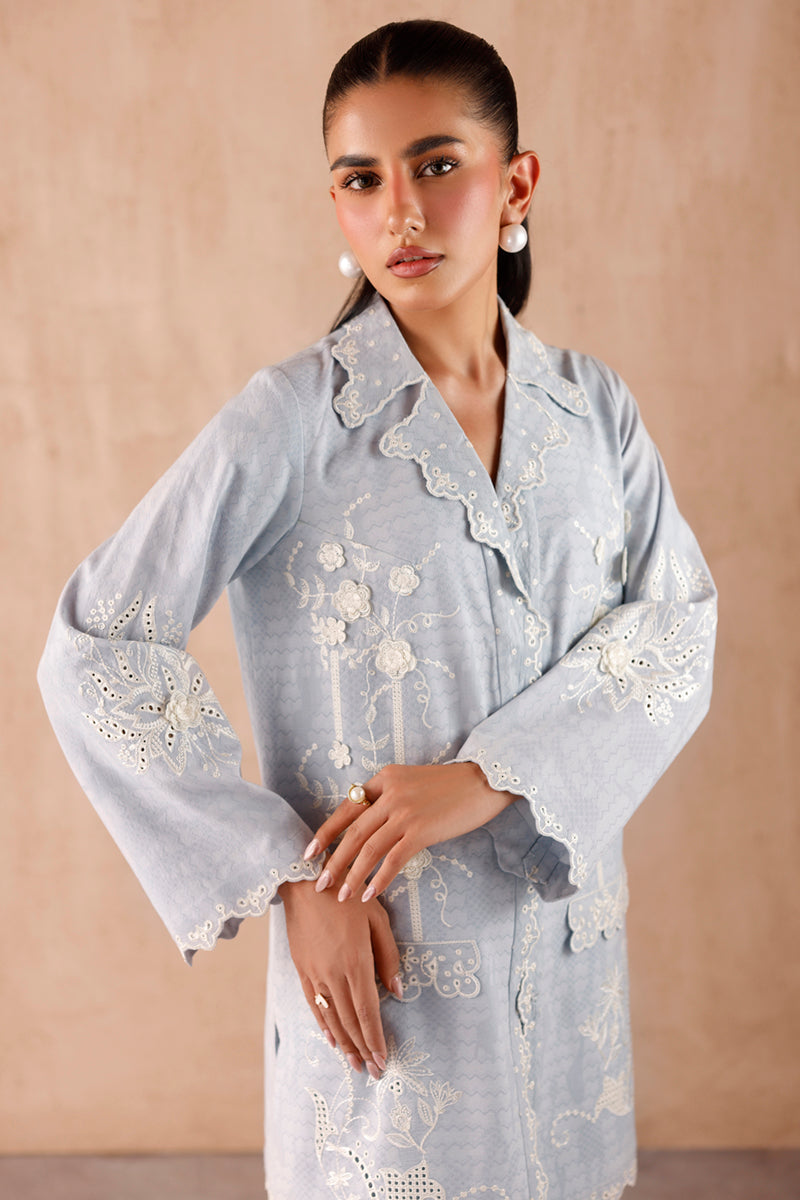Our jacquard-woven coord set in warm, inviting beige is a true expression of elegance. Delicate floral embroidery brings it to life, while the chic open-collar shirt and straight trousers create a silhouette that’s equal parts graceful and refined.