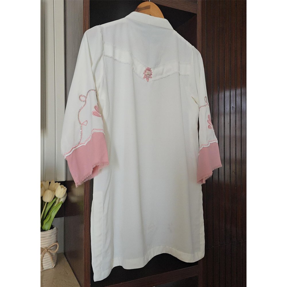 Sleeves are adorned with nude pink aplique , embroidery and swarovski handwork