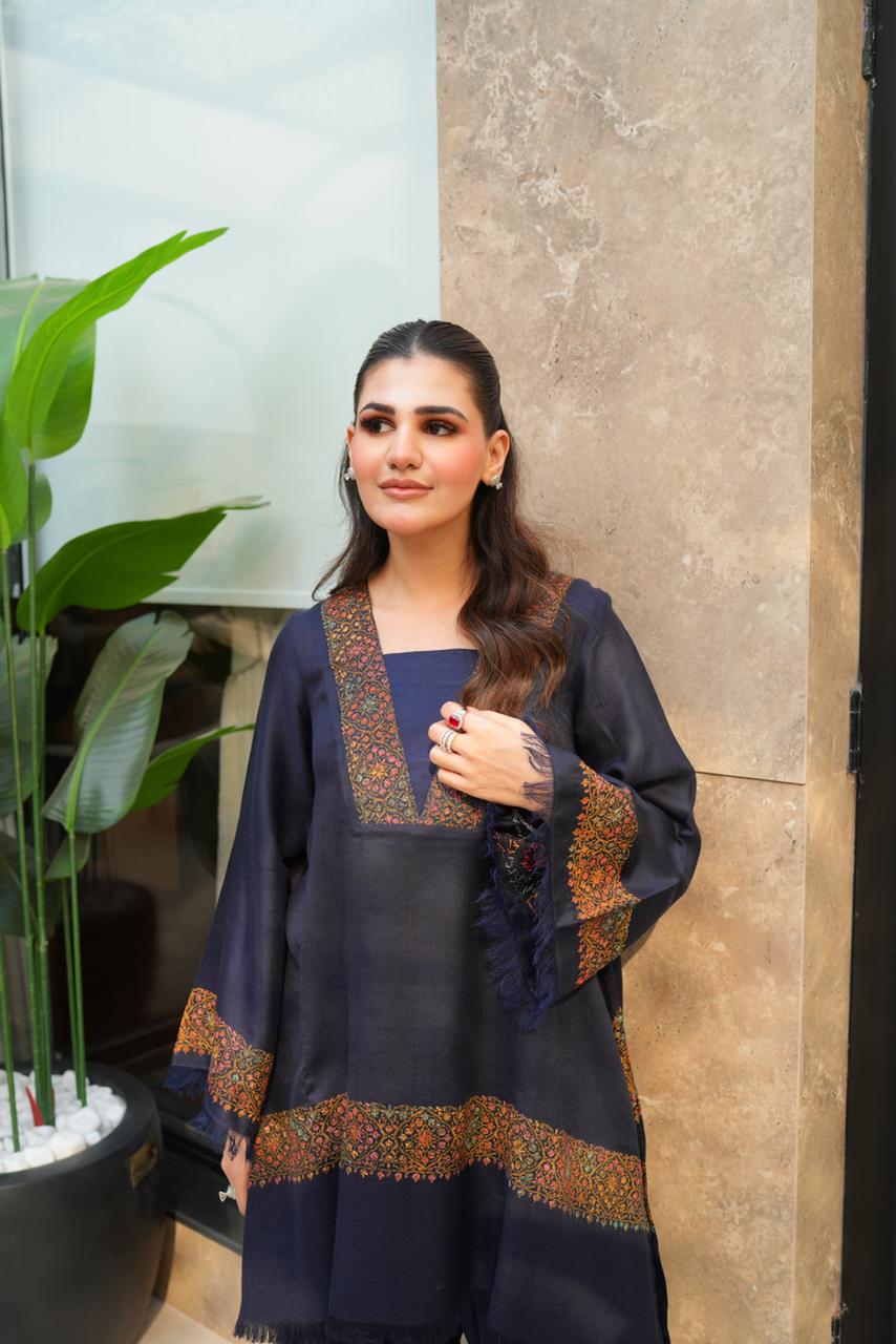 It is an exclusive Ensemble made from premium pashmina with hand embroidery posing spectacular craftsmanship and unmatched finesse of the fit.