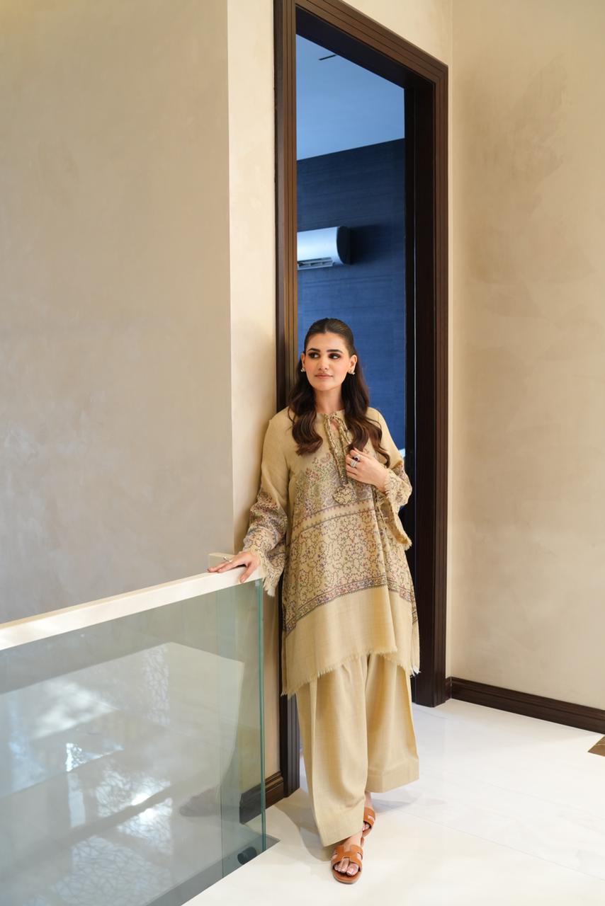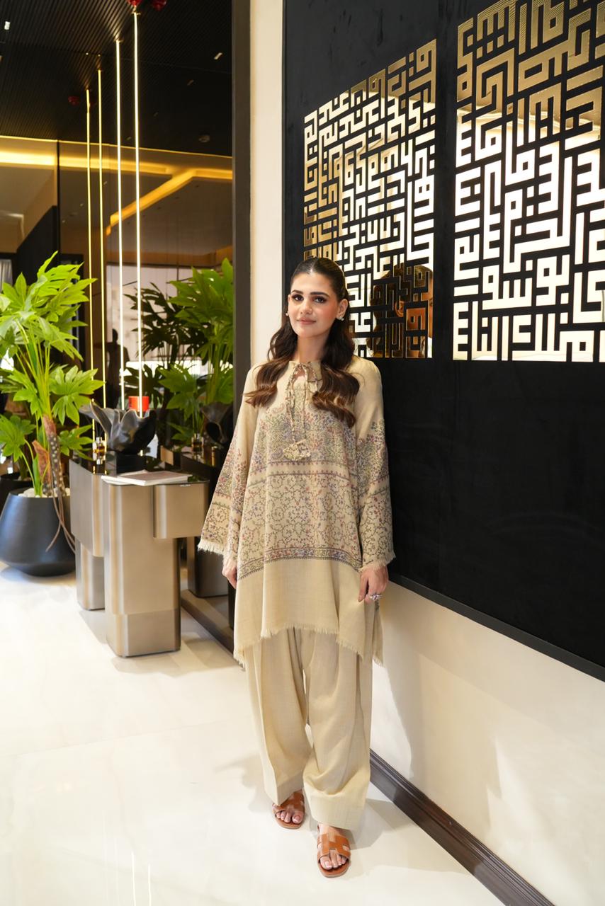 It is an exclusive Ensemble made from premium pashmina with hand embroidery posing spectacular craftsmanship and unmatched finesse of the fit.
