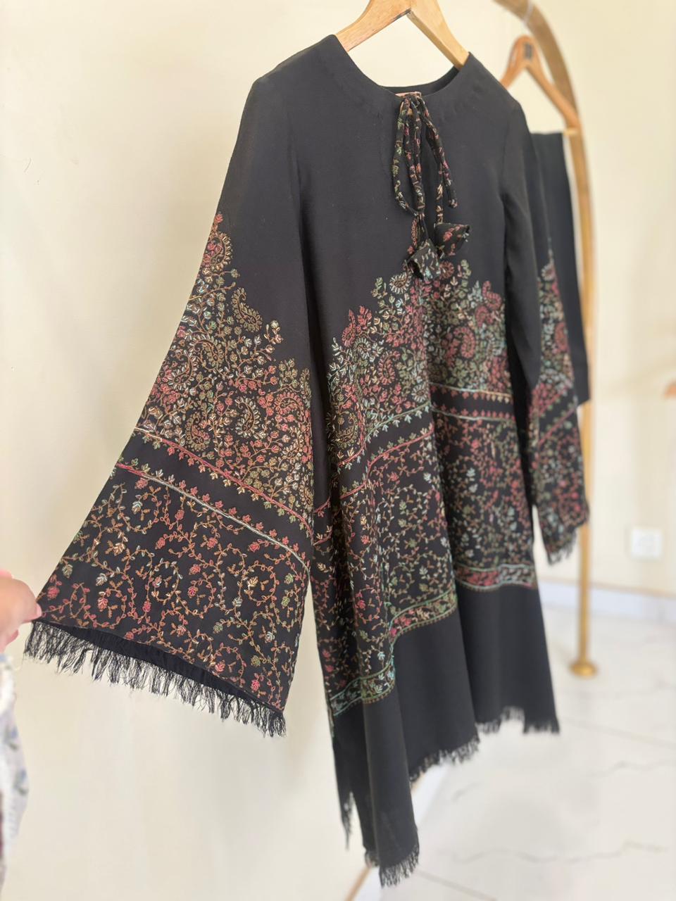 It is an exclusive Ensemble made from premium pashmina with hand embroidery posing spectacular craftsmanship and unmatched finesse of the fit.